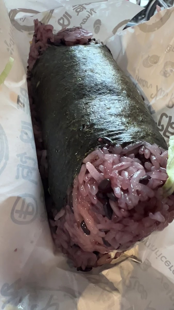 The chicken rice roll is what I ordered only $5.75 it hit the spot for a quick snack tasty a little bit sweet mostly rice but the rice is purple and the chicken was a little sweet and delicious with some white sauce and lettuce and a few other tasty things