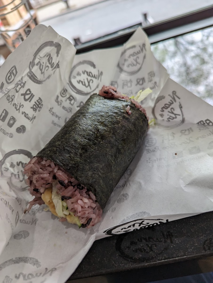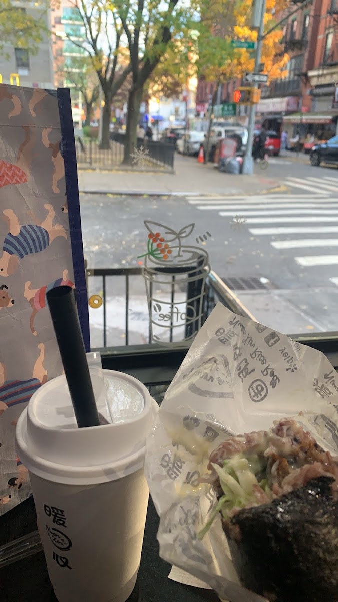 This is a great place for a snack or a light meal. I never tried a rice roll with purple rice before so I was curious how it taste. I got the braised pork with pickled vegetable and it was surprisingly exceeded my expectations! It was served warm so it's nice to eat outside in the cold. FYI, there is a playground across the street with benches. The rice was cooked perfectly which provides a nice texture. The pork wasn't fatty and they give a nice amount of pickled vegetables. I was surprised that they added mayo and it goes so well with the roll. The cost is under $5. I'm so glad this place exist!